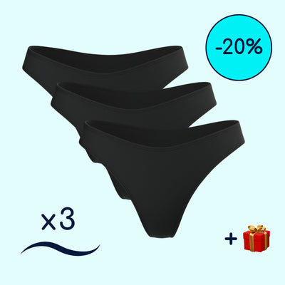• Ideale per l’inizio o la fine del ciclo : Questo tanga è pensato per i giorni di flusso leggero, con un’assorbenza equivalente a 1 o 2 tamponi.